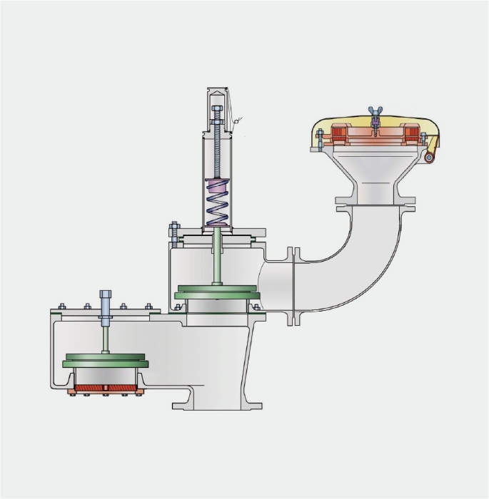 普瑞泰格 管道弹簧加载一体式阻火呼吸阀,型号VD/SV-PA-AD-PF-IIB3,呼气端设置耐长时间燃烧大气爆燃阻火器,在真空端设置了大气爆燃阻火器