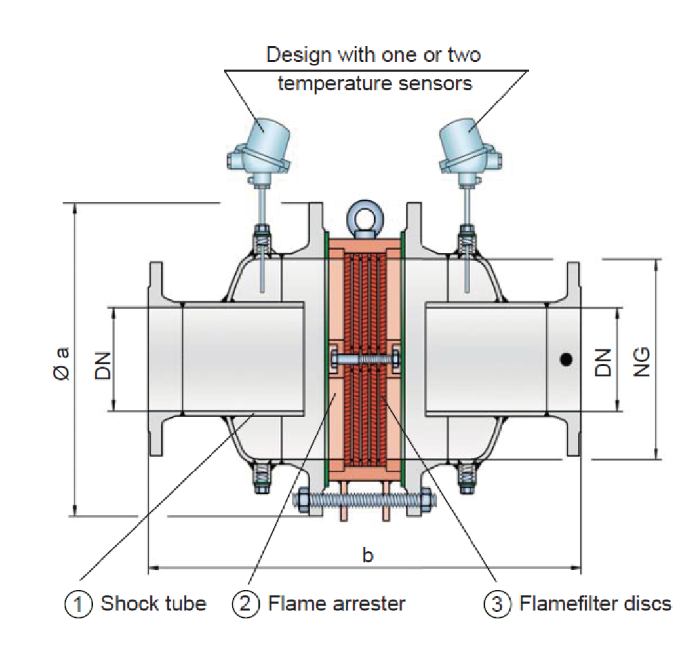普瑞泰格 管道爆轰阻火器,型号 DA-SB,DA-G和BR/TS