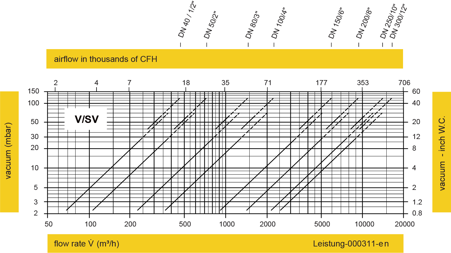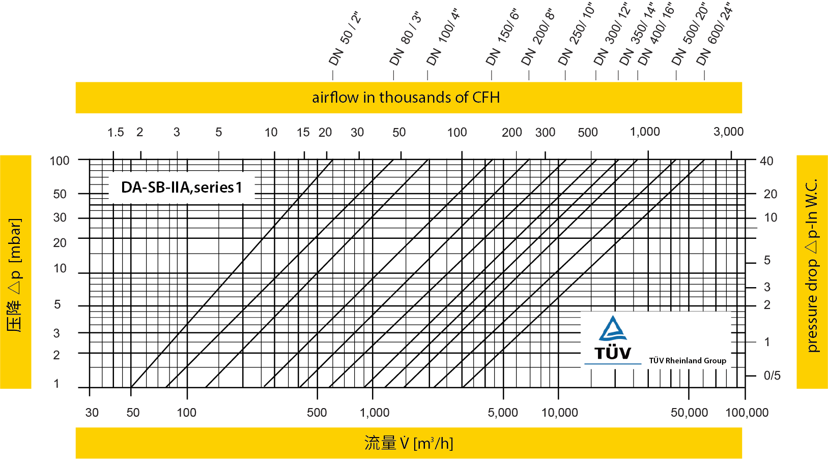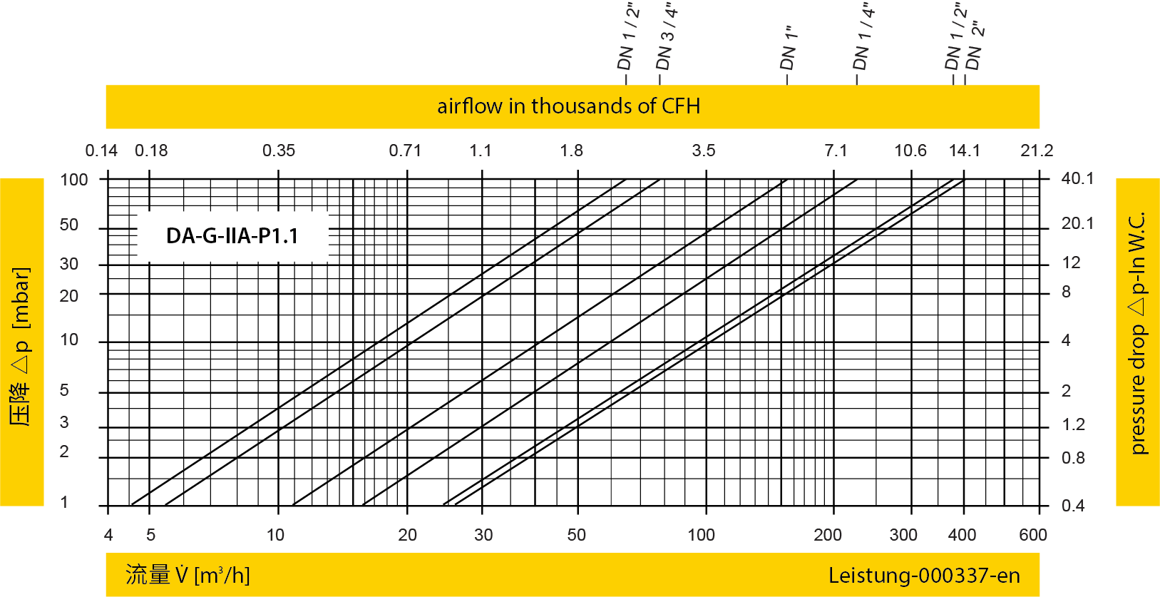 *此流量图是在经德国TÜV校验和认证的流量测试设备上实际测试并绘制的体积流量 V (m³/h)参考 ISO 6358 中空气的标准参考条件(20°C, 1bar)