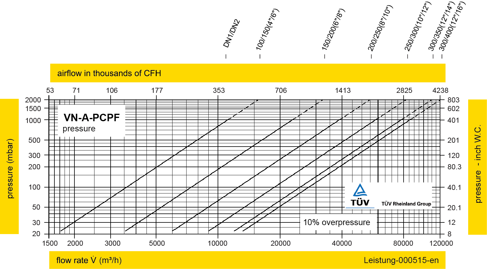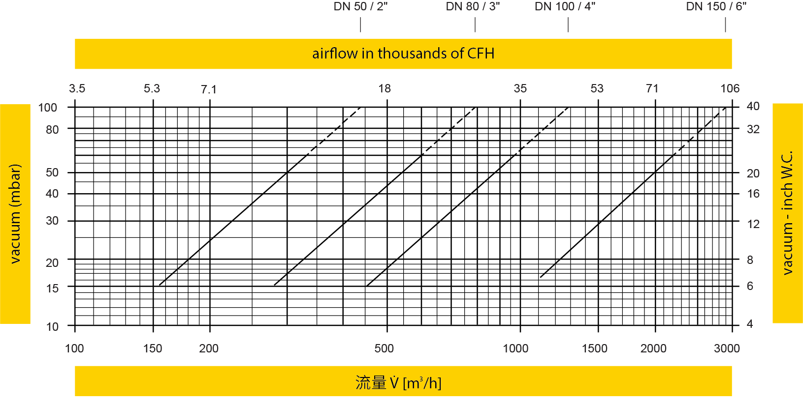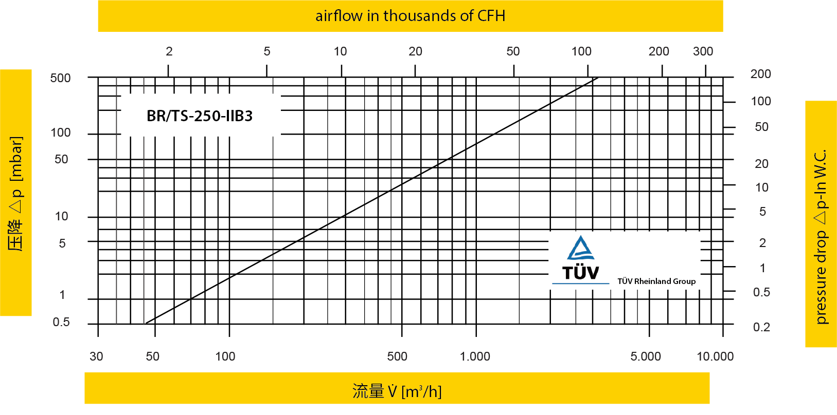 *此流量图是在经德国TÜV校验和认证的流量测试设备上实际测试并绘制的体积流量 V (m³/h)参考 ISO 6358 中空气的标准参考条件(20°C, 1bar)